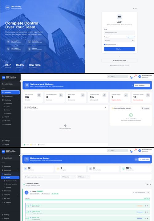 Custom CRM developed for DBS Building Services, a janitorial cleaning company, to centralize operations, improve team management, and streamline workflows.